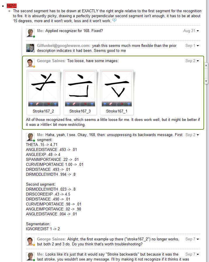 Over the past week, George, Patrick, and I have been working on fixing the stroke recognizers that have been bothering people. The last time we did a round of improvements was almost a year ago, and there have been 108 reports of frustrating recognizers since then. We’ve taken every single one of those reports, found the problem, and twiddled the recognition parameters until we couldn’t find the problem any more.