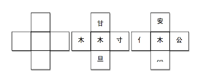- Take a simple component or radical, like 木 or 白 etc. and place it in the center of the box.