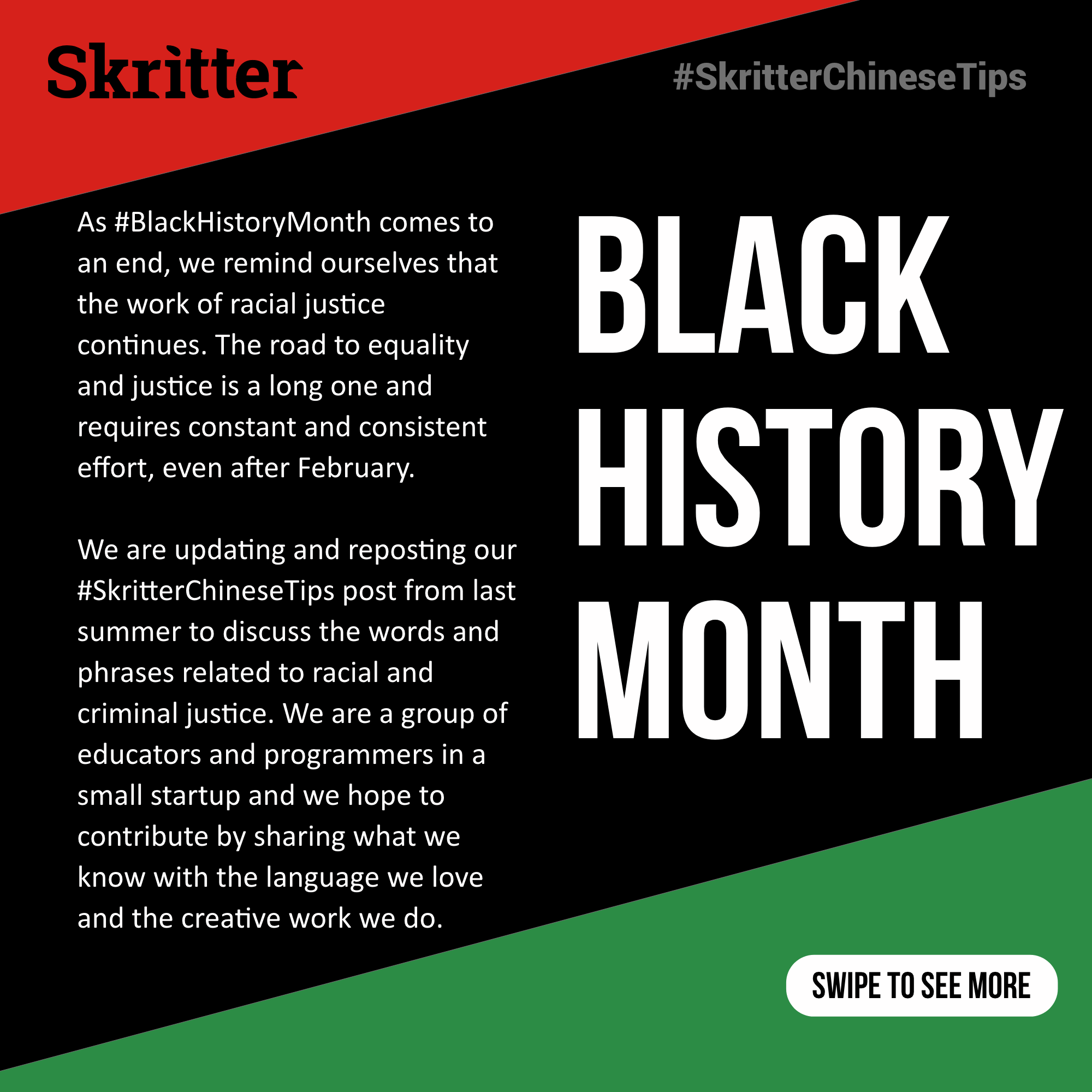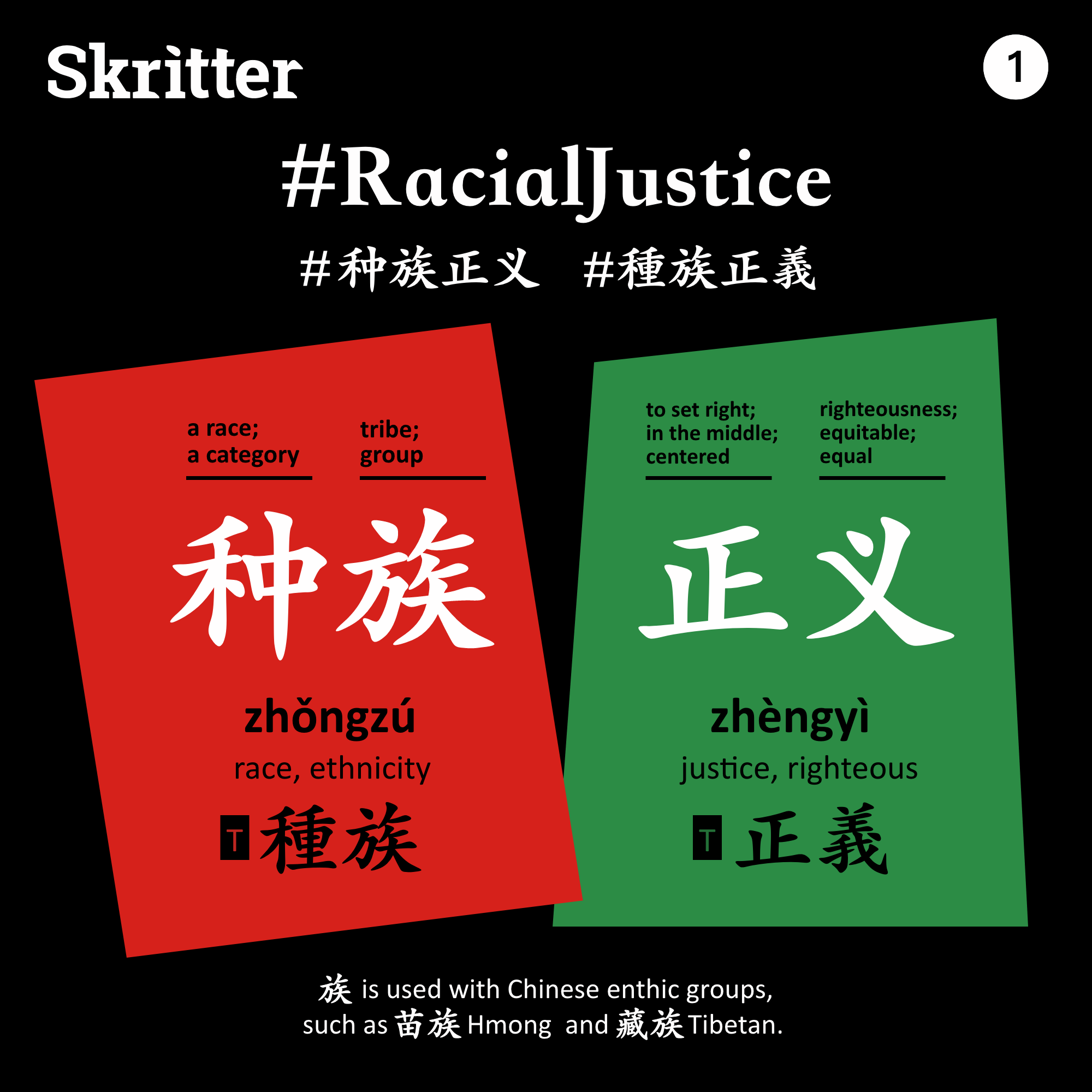 We are updating and reposting our #SkritterChineseTips post from last summer to discuss the words and phrases related to racial and criminal justice. We are a group of educators and programmers in a small startup and we hope to contribute by sharing what we know with the language we love and the creative work we do. Study the Skritter deck here.
