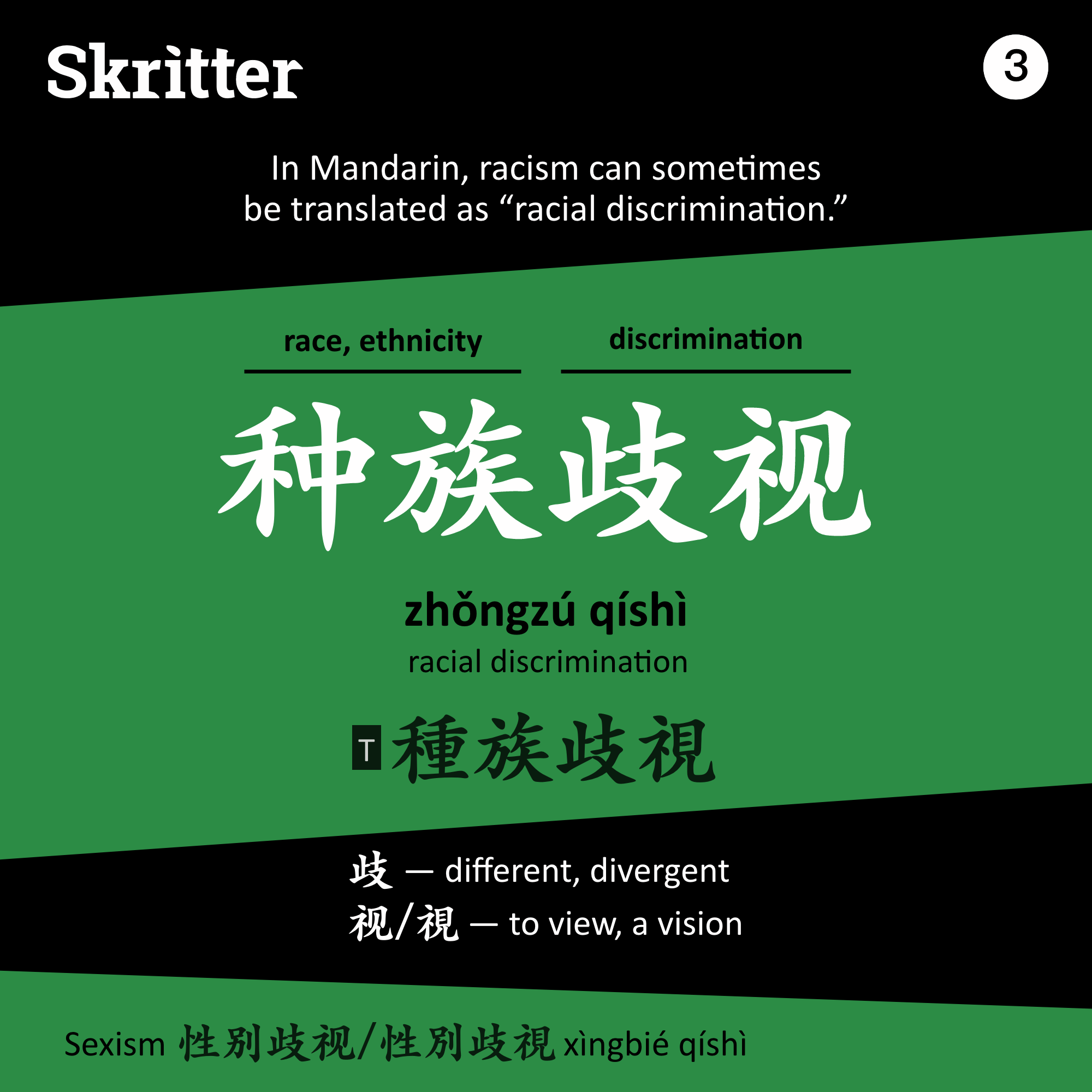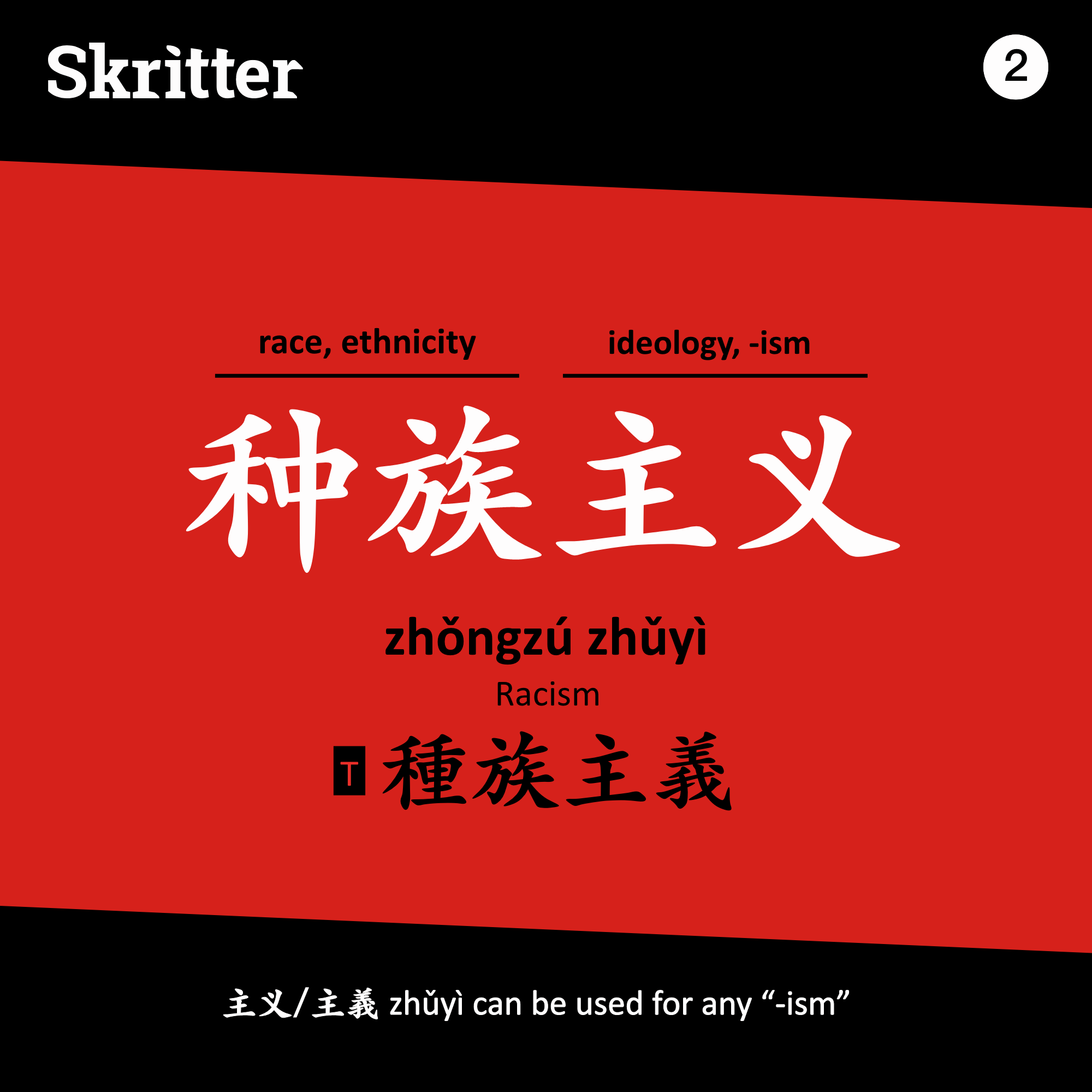 种族主义 / 種族主義 zhǒngzú zhǔyì – Racism