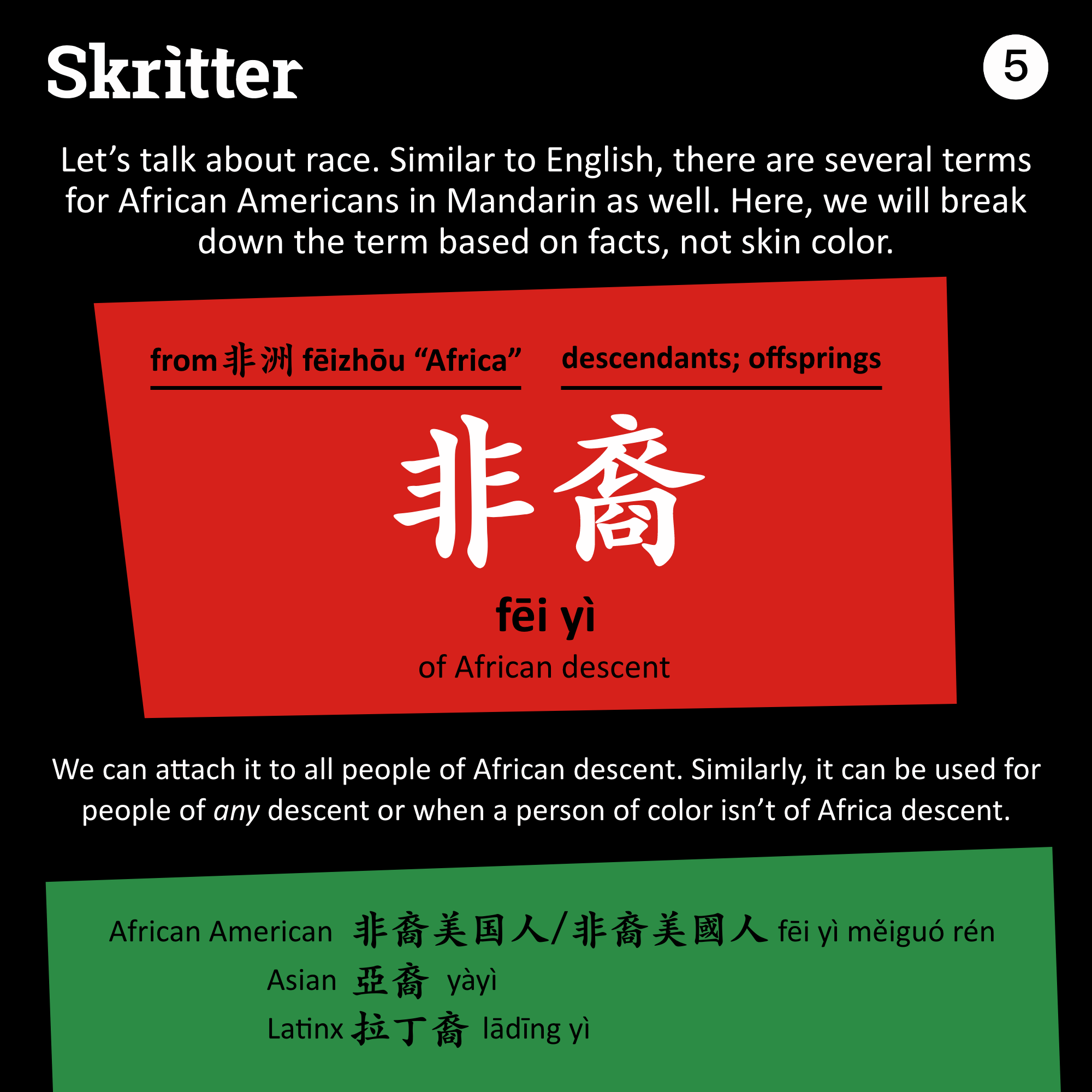 非裔 fēi yì – of African descent