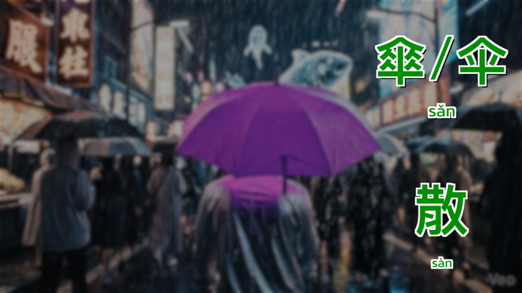 - Chinese: 傘 (sǎn) – Umbrella