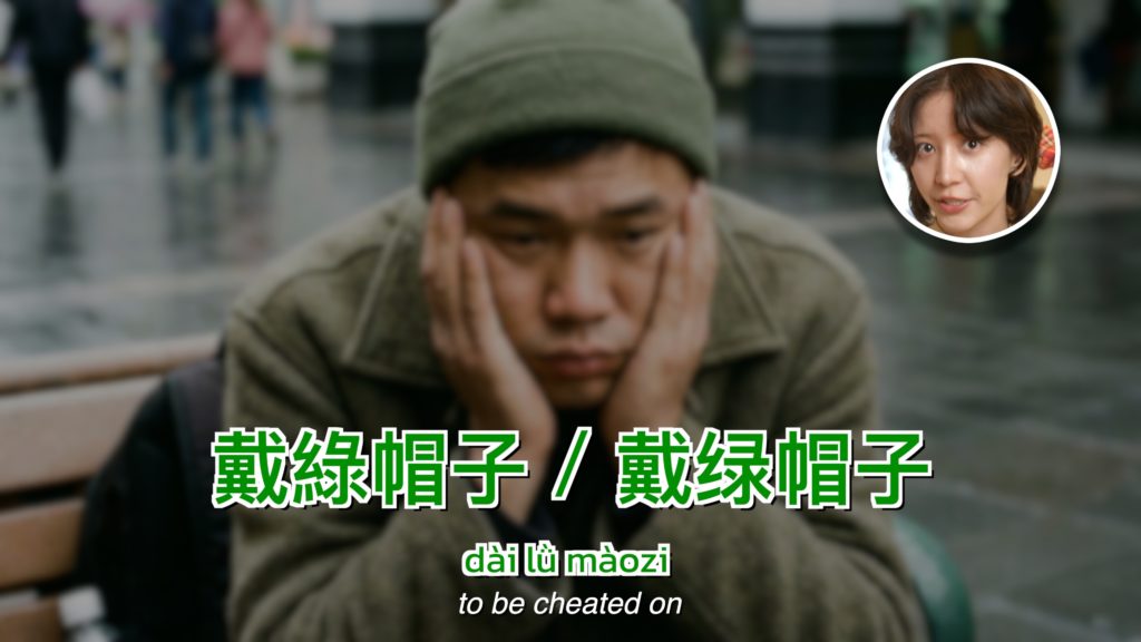 - Phrase: 戴綠帽子 (dài lǜ màozi)